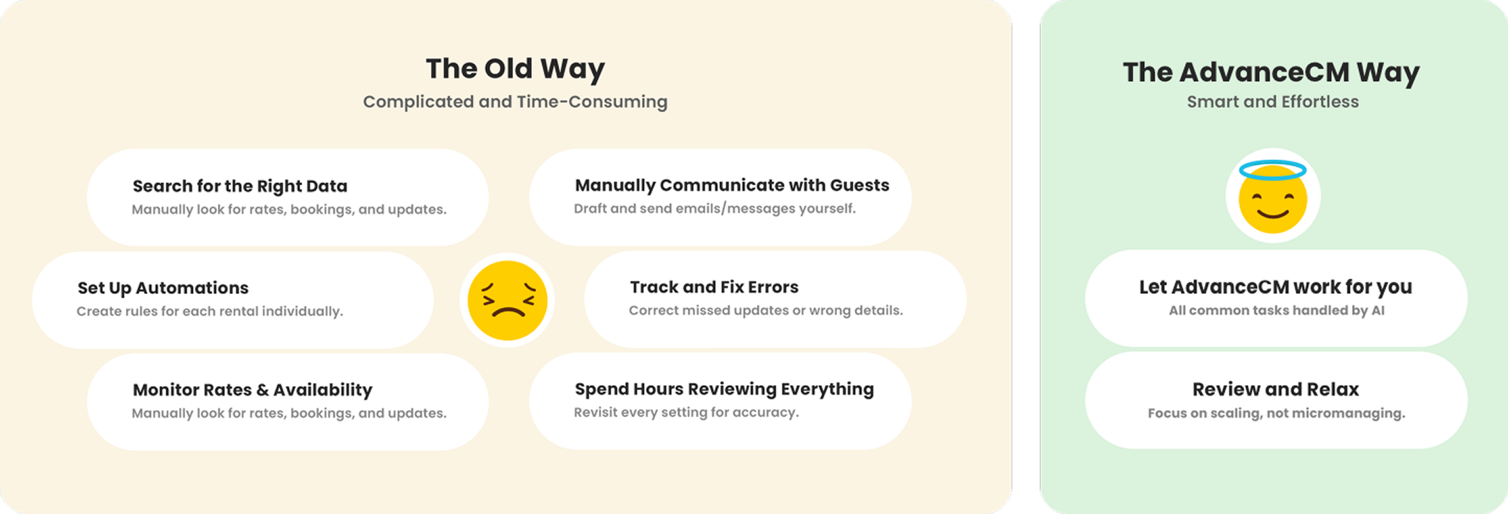 Imagine making smarter decisions with AI-powered insights, solving problems before they happen, and automating repetitive tasks. AI handles the details — guest inquiries, bookings, and maintenance — freeing you to focus on growing your business and delivering unforgettable guest experiences.