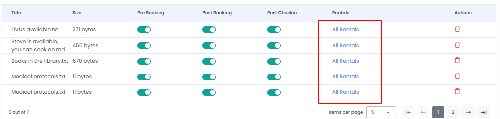 With each uploaded document we also have 3 toggles for Pre Booking, Post Booking and Post Checkin, these toggles help to control permissions of each added document.