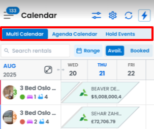 Here, you will see the options to view your Multi Calendar, Agenda Calendar and Hold Events.