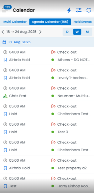 The Agenda Calendar displays daily check-ins and check-outs, making it especially useful for coordinating staff and planning operations.