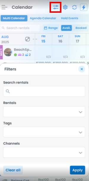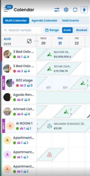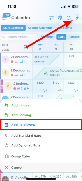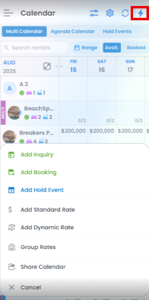 The Multi-Calendar allows you to view all your rentals on a single screen and easily add events by tapping on the calendar.