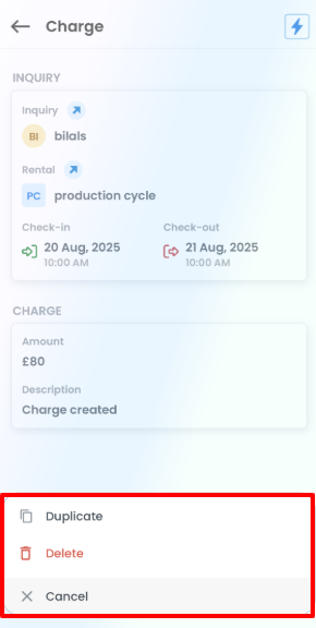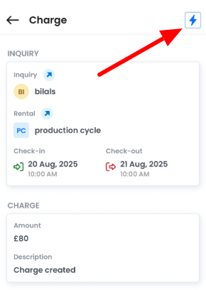 The Charges module in the AdvanceCM mobile app allows you to quickly collect payments from guests without creating an invoice. You can charge a guest’s saved card directly from a booking or from an Extra, providing a fast and hassle-free way to receive payments.