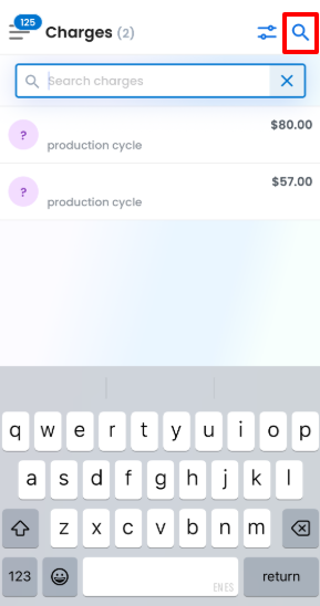 Use the Search icon to locate a charge by entering the name in the search bar, as shown in the screenshot below.