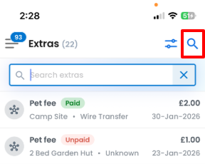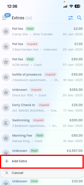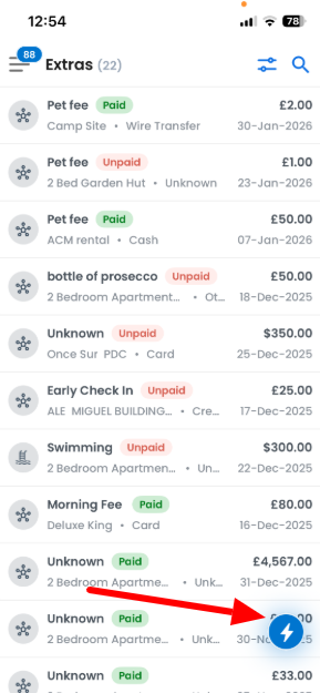 The Extras module in the AdvanceCM mobile app allows you to track additional payments received from guests, regardless of the payment method. By creating entries in Extras, you can document these payments and, if needed, charge the guest directly through the app using the Charges module.