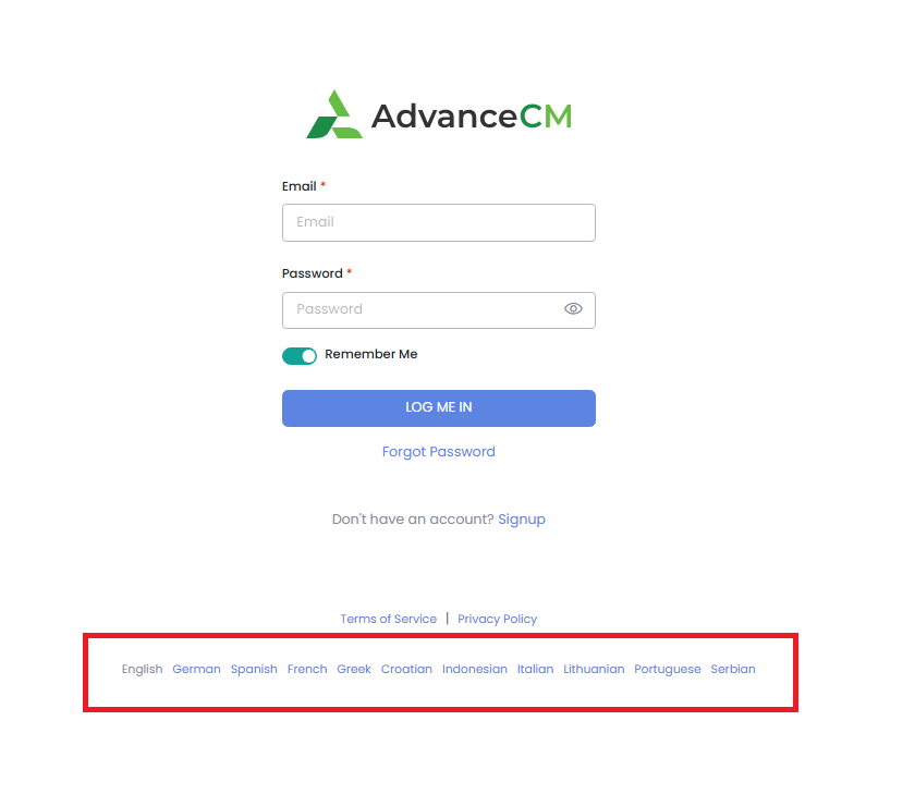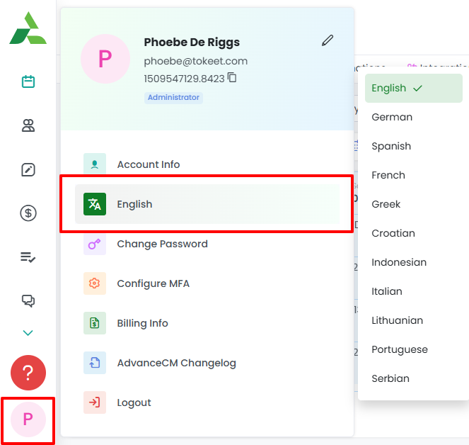 You can switch languages in AdvanceCM by following these simple steps: