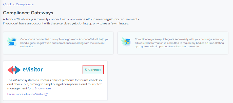 AdvanceCM now integrates with eVisitor, enabling property managers to automatically sync rentals and guest information with Croatia’s national tourism registry. This integration helps you save time, reduce manual entry, and stay compliant with local regulations.