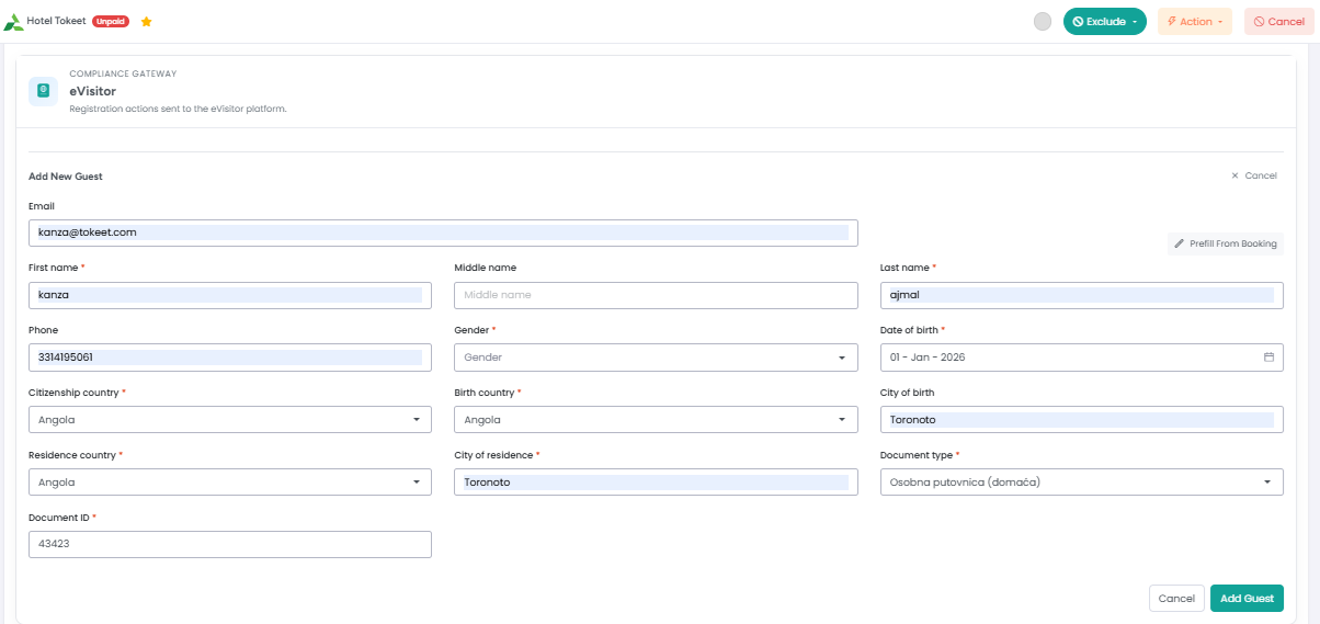 Clicking on the Add Guest button will open a form for creating guest details, which you will fill out.