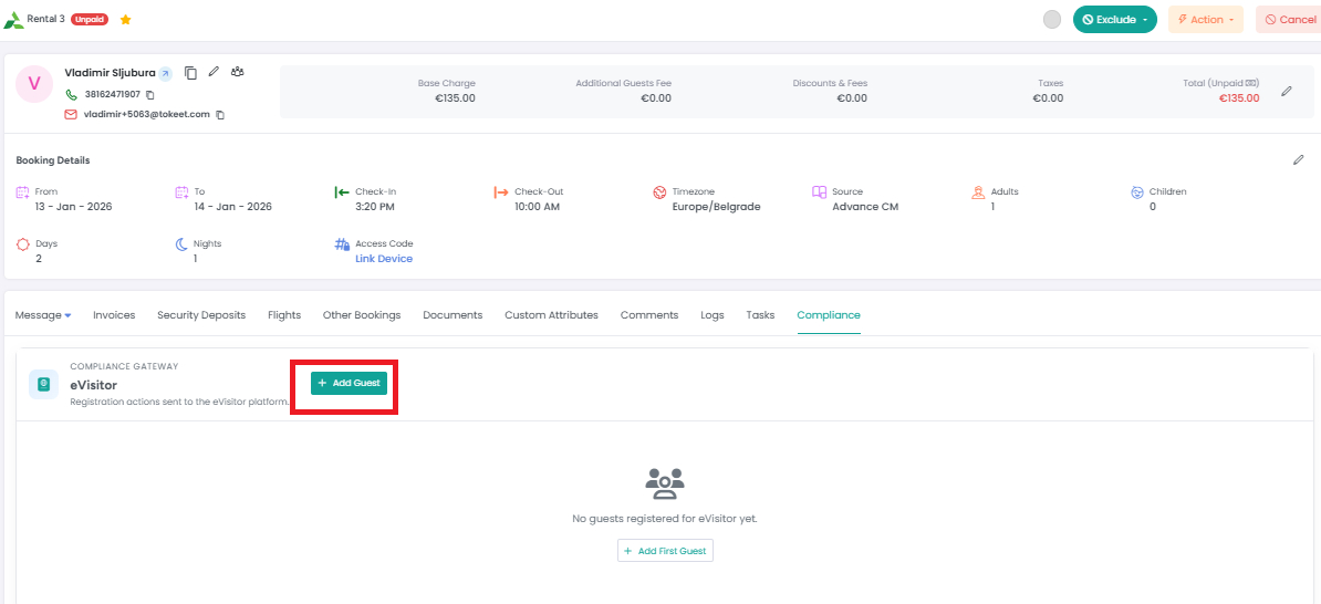 Automatic Rental Sync: Push your properties from AdvanceCM to eVisitor in just a few clicks.