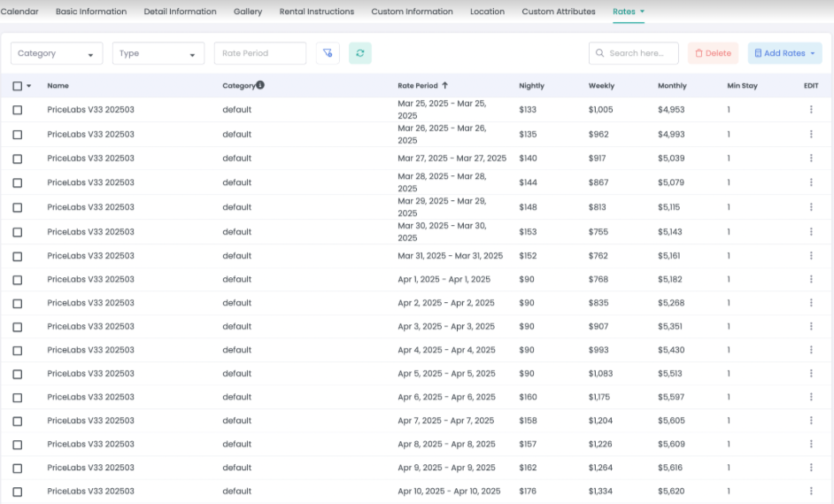 Rates will appear as a “default” rate category, with PriceLabs in the name