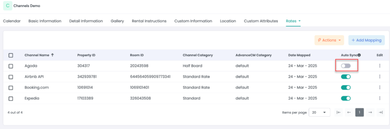 Go to the Rates tab in AdvanceCM and toggle Auto Sync OFF for the desired channel.