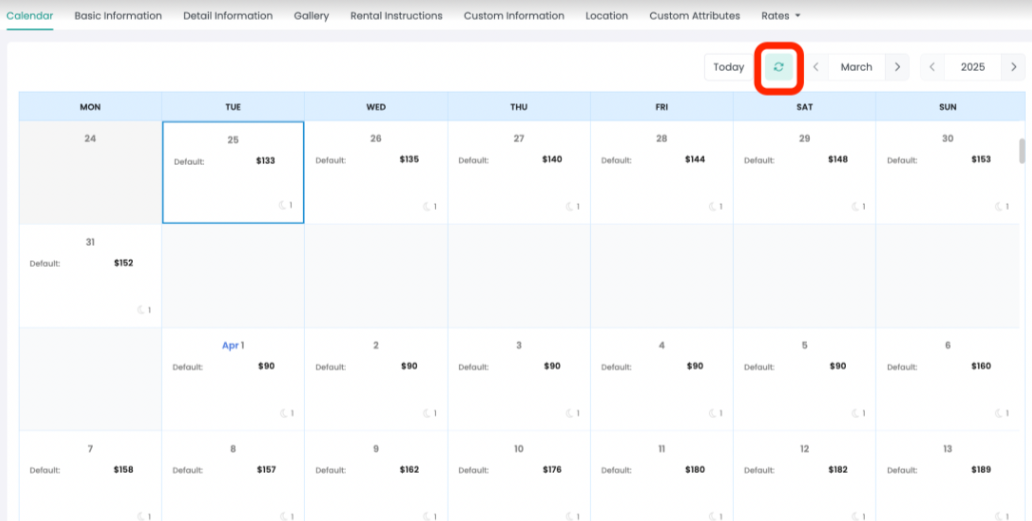To display these rates on your AdvanceCM calendar click on the Refresh icon on your Rates Calendar: