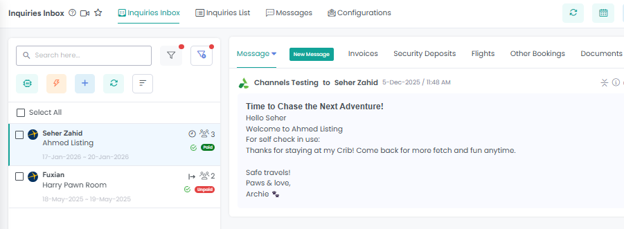 AdvanceCM now supports the Expedia Messaging API, allowing you to send and receive guest messages from Expedia bookings directly inside your Unified Inbox. This integration helps property managers manage communication more efficiently without needing to log in to the Expedia Partner Portal.