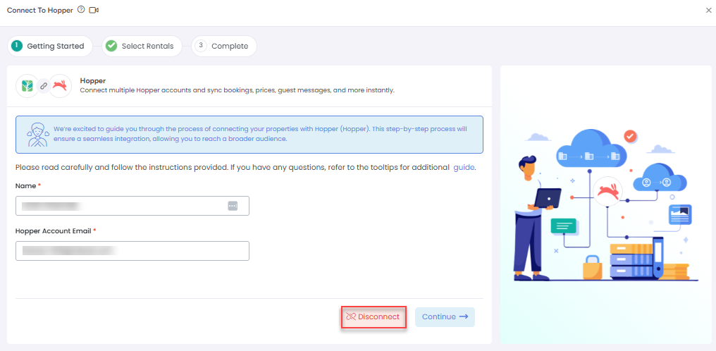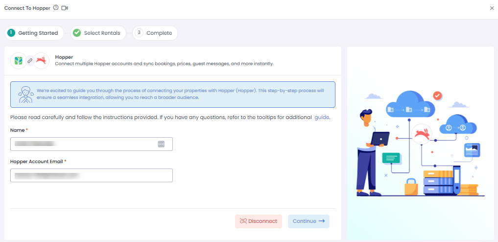 3. Enter a Name for your connection and your Hopper Email Address, then click Continue.