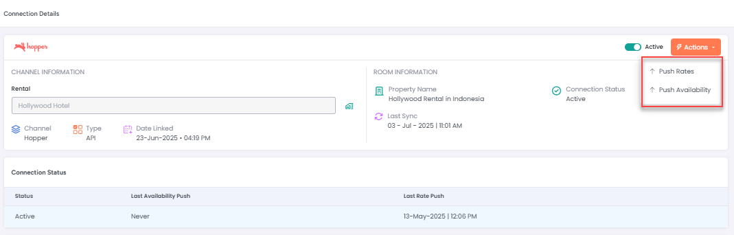Similarly, rates are pushed automatically, or you can manually push them using the Push Rates option.