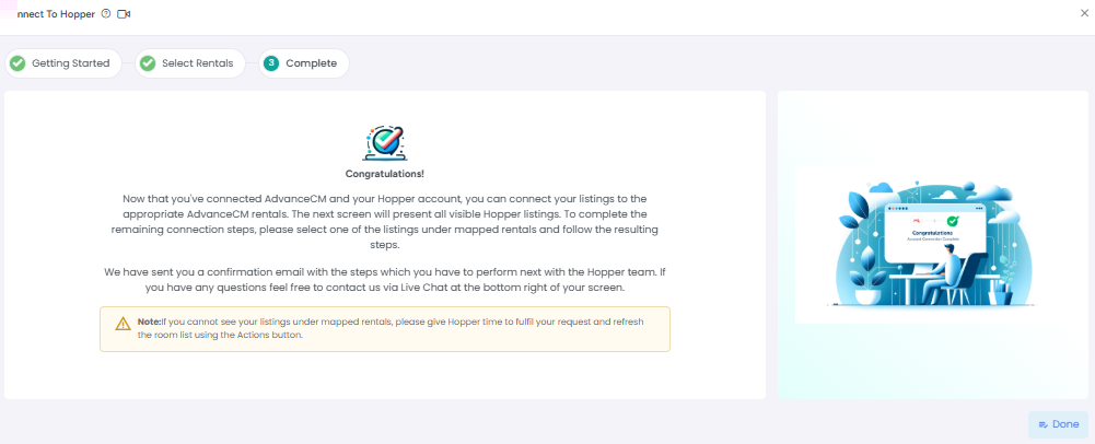 This will open the Hopper Connection overlay titled Getting Started.