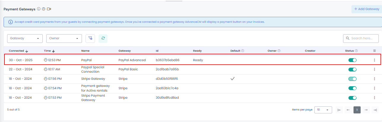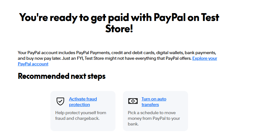 Return to AdvanceCM, where you will see that your PayPal Advanced connection has been successfully established.