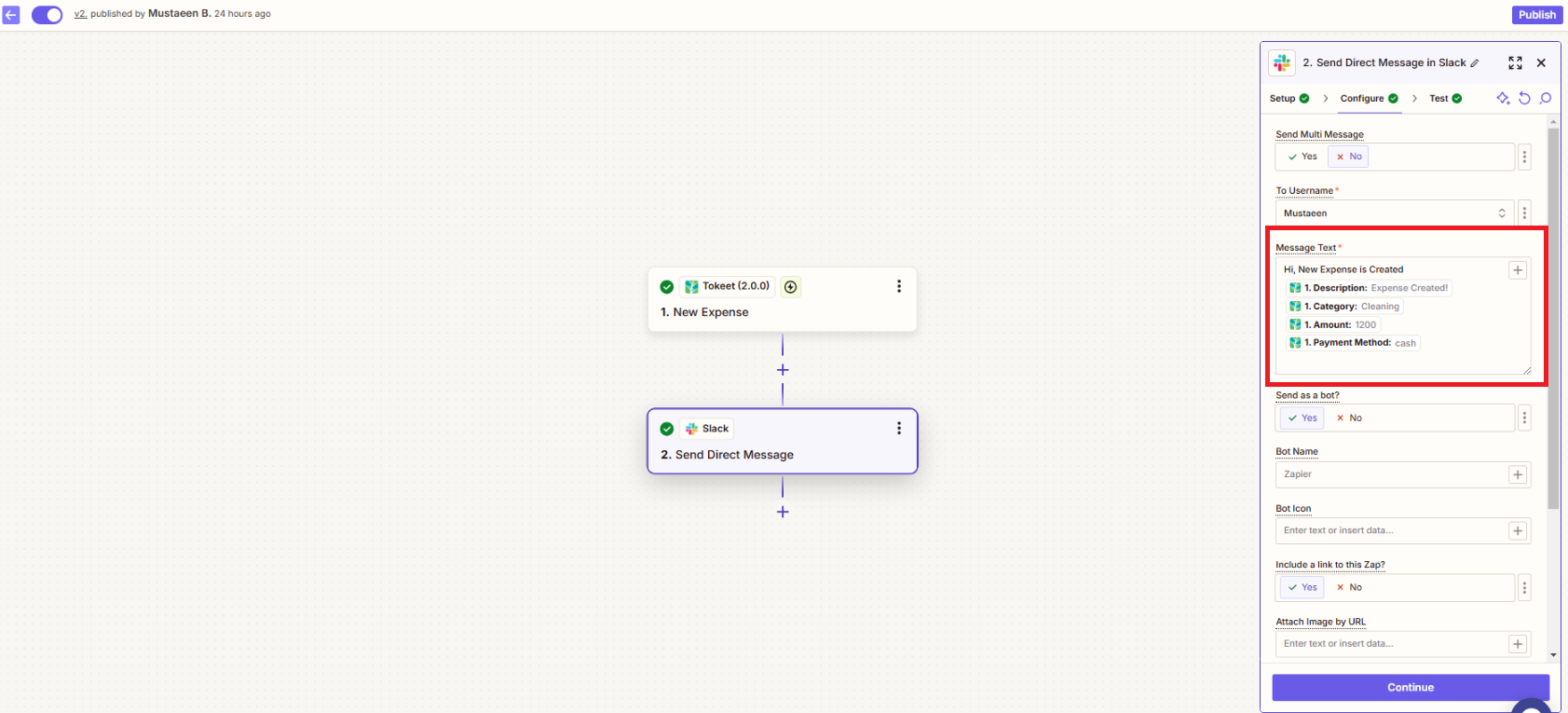 Now, if you go to the Zapier platform and check the created Zap, you will see the Expense template data from the AdvanceCM Expense Autopilot.