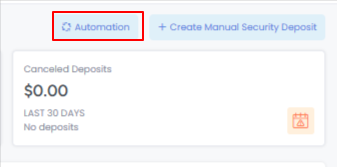 Security Deposit Automations allow you to automatically capture deposits based on predefined rules, reducing manual work and ensuring consistent protection for each booking. Click on the Automation button to set this up.