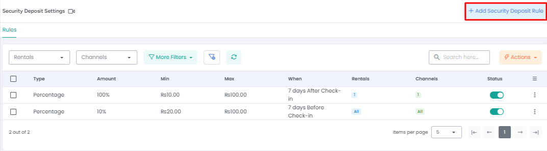 To create a new rule, click on the Add Security Deposit Rule button.