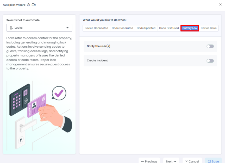 The AdvanceCM Locks Automation Autopilot Wizard simplifies lock management by automating actions triggered by various lock-related events. These automations cover: