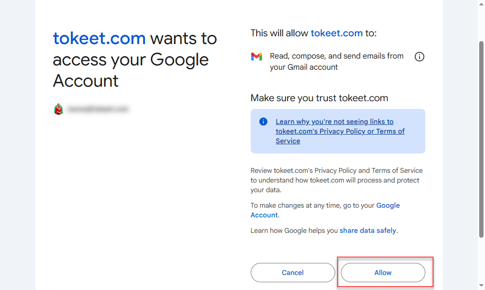 Once you choose Account in above step, it takes you to next step where you click on Allow button