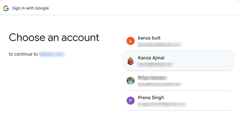 Click on Connect Gmail Now and it will open below overlay to select Gmail Account to connect.