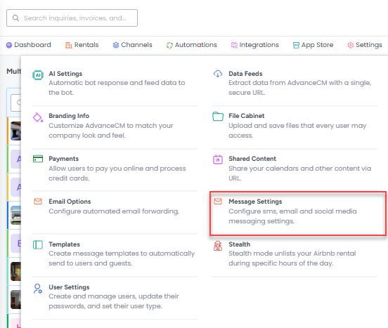 First, click on the Settings option in the top navigation bar, then on Message Settings as shown below.