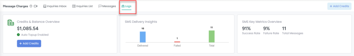In AdvanceCM you can track Messaging Logs inside Unified Inbox Overlay under Logs tab