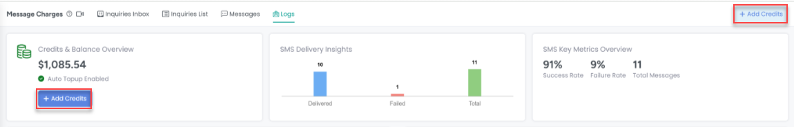 This tab shows all the invoices which are charged by AdvanceCM from user's credit card using Add Credit button