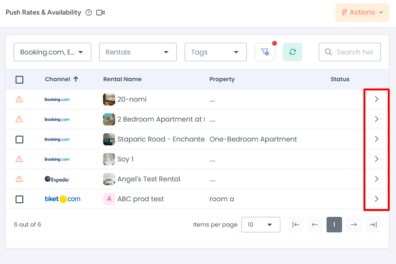 Once rates or availability are pushed, you can track the status under the Status column.