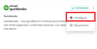 Click the Configure button to open the QuickBooks Configuration screen.
