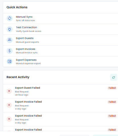 You can perform manual sync using Quick Actions section as mentioned in below screenshot. Similarly you can view all the actions performed regarding sync from AdvanceCM to QuickBooks end.