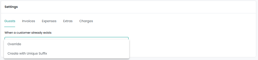 When syncing guest information from AdvanceCM to QuickBooks, there may be cases where a guest with the same name already exists in QuickBooks. To manage this, AdvanceCM provides a dropdown option called “When a customer already exists”.
