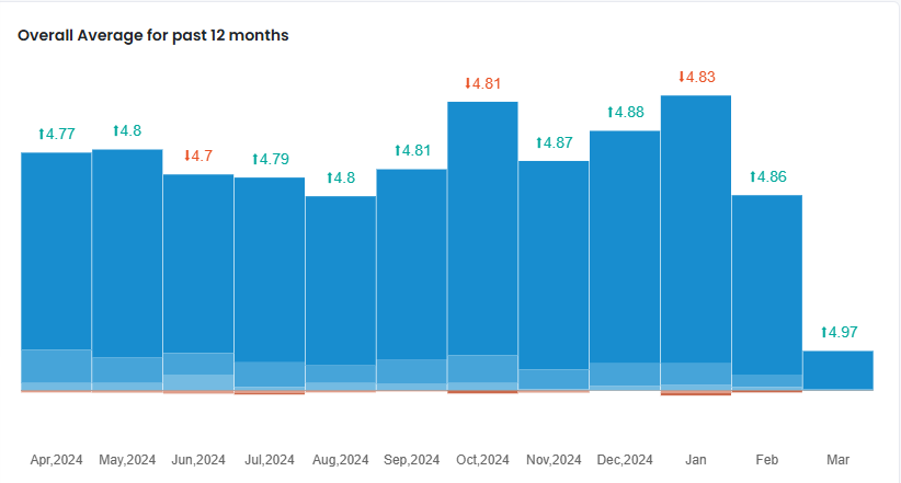 The Reviews Graph provides a visual overview of all reviews received over the past 12 months, including the current month.