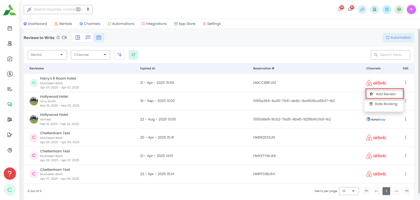 The Reviewable Bookings List View in AdvanceCM allows property managers to efficiently monitor and manage those bookings for which Reviews are not submitted by host for guests yet. By using this List View, property managers can easily track those bookings for which reviews are not submitted by them yet.