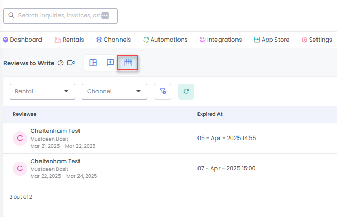 Reviewee – It shows rental name along booking details.