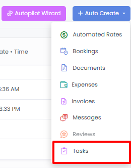 Then click on the + Auto Create button on the right and choose the Tasks option.