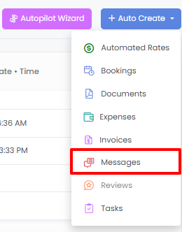 Click on the + Auto Create dropdown and select the Messages option to create a payload automation.