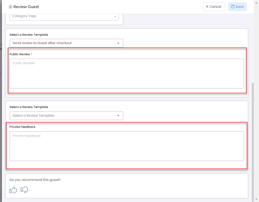 In Addition, you can choose Review template for responding Public Review and Private Review for guest.