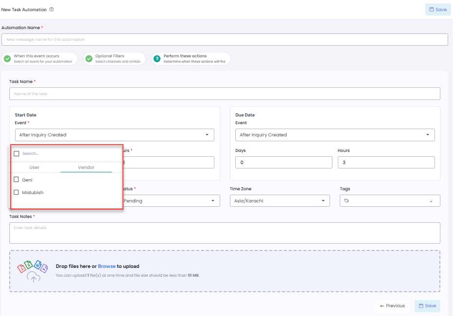 1- Task Automation – Assign to both User and Vendor