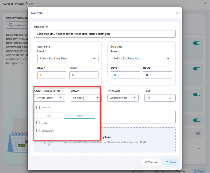 2- Bookings Autopilot – Assign to both User and Vendor