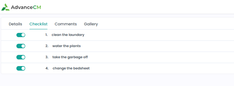 Checklist items are created in AdvanceCM via the Tasks module