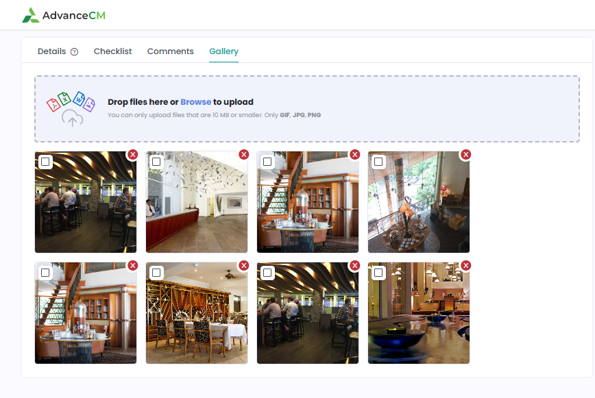 Uploaded images appear in the Task module in AdvanceCM
