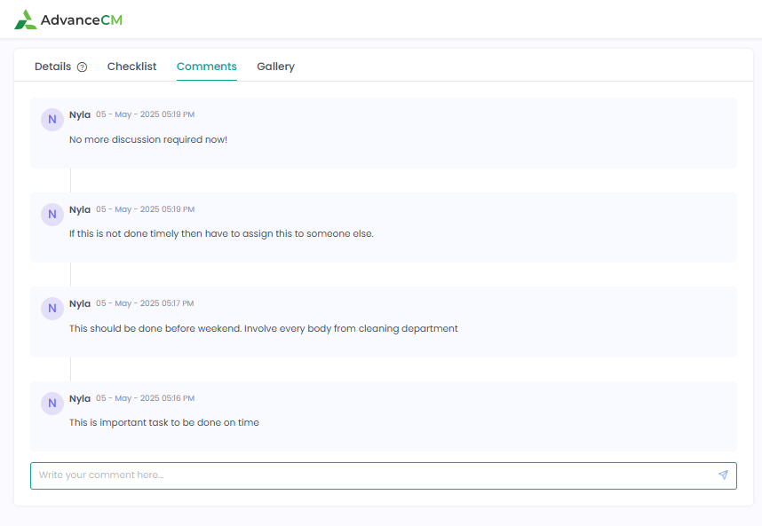 Vendors can add new comments, which will be reflected in the corresponding task’s Comments tab in AdvanceCM