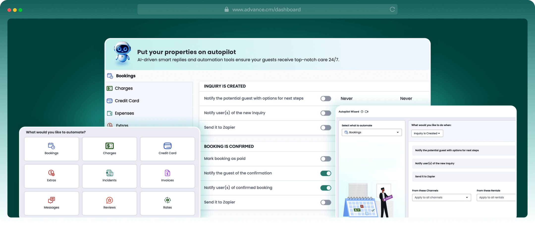 Put your rentals on autopilot with advanced automation, team collaboration, integrated reporting and Al-powered guest communication - all designed to scale with your business and maximize efficiency.