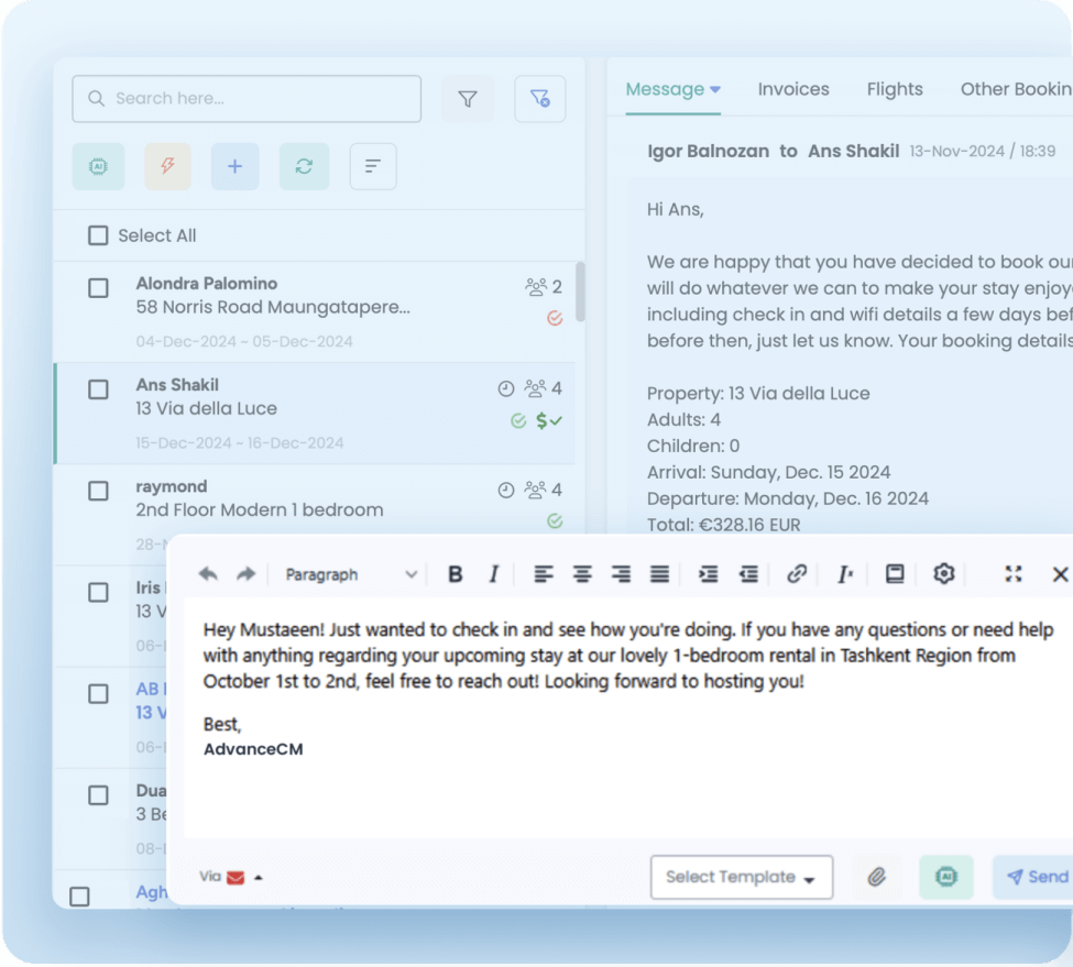Advance Intelligence analyzes guest inquiries and provides tailored response suggestions. It learns from your past interactions to deliver personalized, relevant replies, enabling quick and accurate communication.