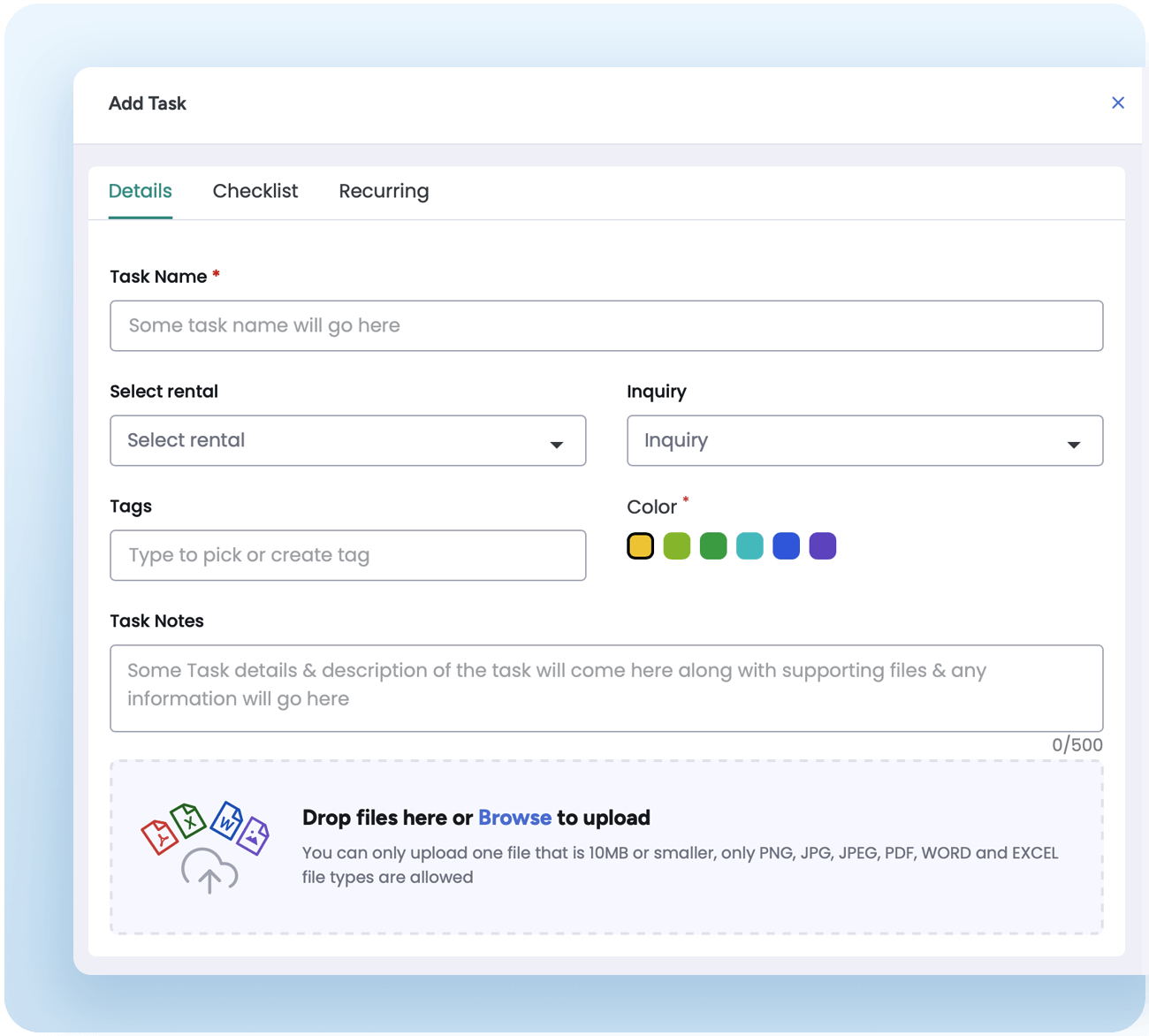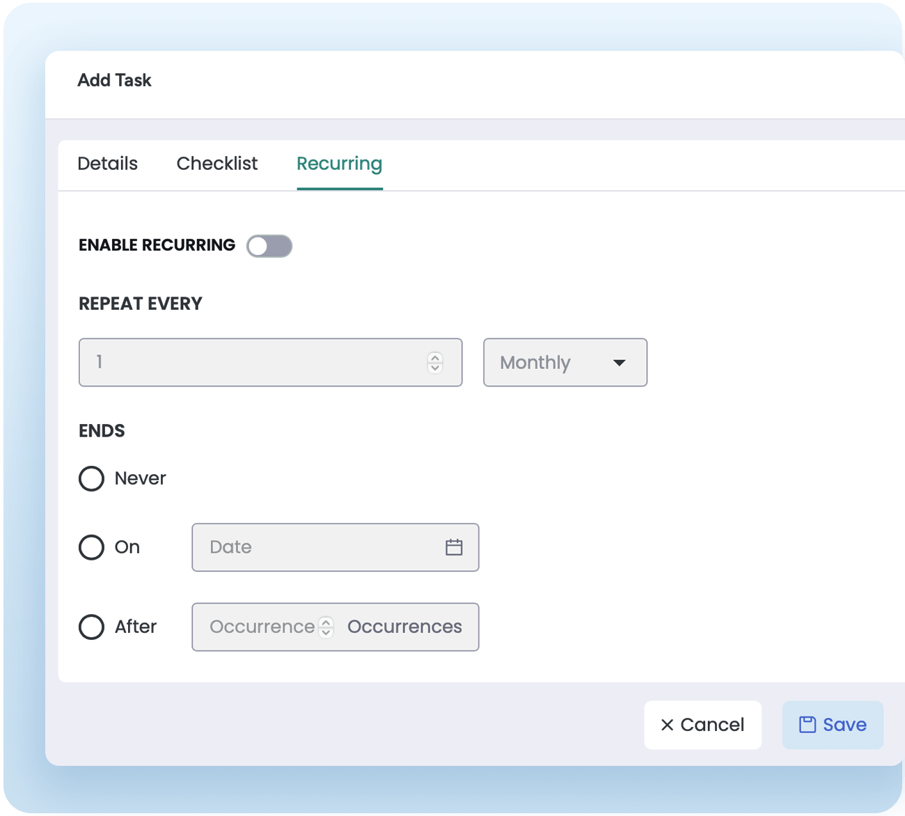 Set tasks to recur automatically for routine activities such as cleaning, maintenance, or inspections, ensuring ongoing responsibilities are handled effortlessly.